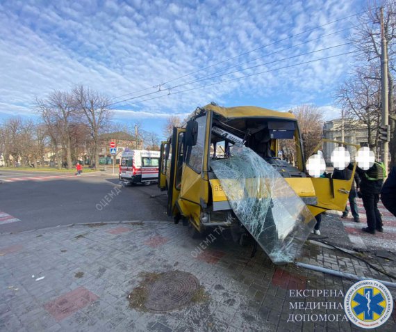 Госпіталізовано також 46-річного водія маршрутки. У чоловіка, за попередніми даними, перелом ребер, забій грудної клітки та численні забійні рани.