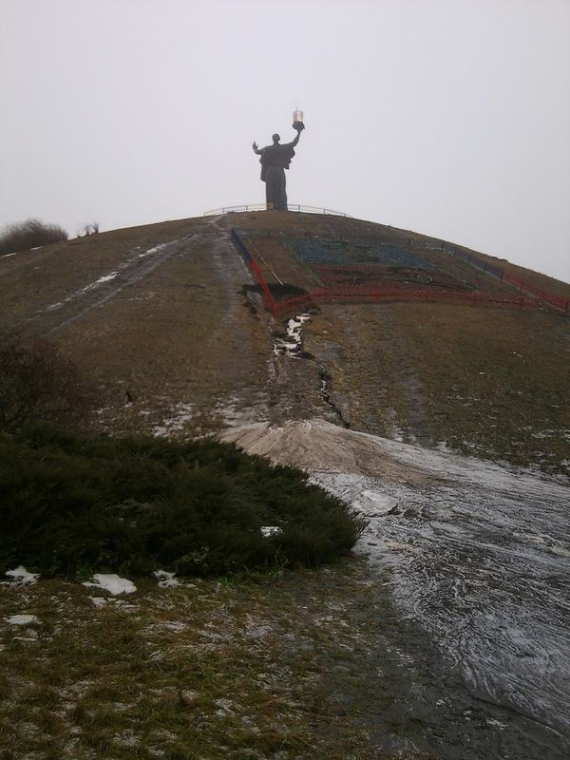 На черкаському меморіальному комплексі "Пагорб Слави" через зсув ґрунту утворилося кількаметрове провалля. Комунальники пов'язують це з погодними умовами.