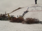 Уже наступного дня після розголосу в інтернеті, провалля на Пагорбі Слави почали засипати комунальники міста спільно з курсантами Академії пожежної безпеки ім. Героїв Чорнобиля. Вишикувавшись у ряд, МНСники передавали одне одному відра з піском і засипали яму.