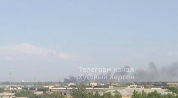 У небо піднімається чорний дим. Вибухи біля Херсону підтвердило "Суспільного".