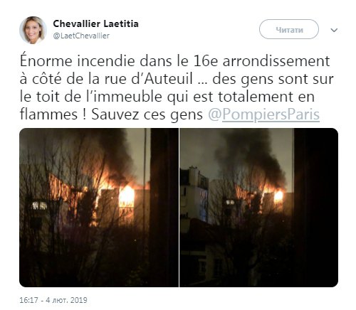 Директор з комунікацій ExterionMedia France Летиція Шевальє оприлюднила у своєму Twitter фото пожежі.