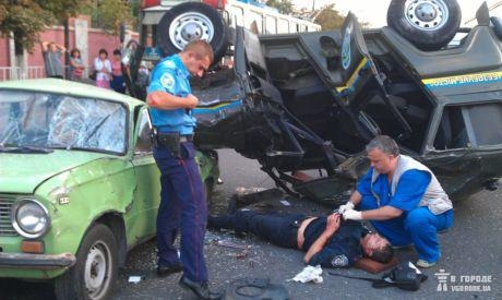 Від удару патрульний автомобіль перекинувся і приземлився на дах іншого ВАЗу. Рятувальникам довелося діставати людей з понівечених машин, які перетворилися на купи металолому та гасити пожежу.