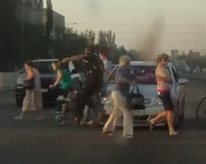 У Дніпропетровську чоловіки на автомобілі Opel Vectra з номерами АЕ 8777 ВI на пішохідному переході в'їхали в натовп людей і, збивши жінку, яка йшла з дитиною, втекли.
