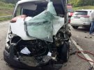 "27-річний водій Ford виїхав на зустрічну смугу і зіткнувся з "ВАЗ-21011". За кермом останнього перебував 60-річний чоловік. 64-річний водій маршрутки "Еталон" не встиг загальмувати і врізався у машини. За ним слідом 62-річна водійка авто Toyota RAV4. У результаті - всі авто розбиті. 11 постраждалих забрали до лікарні. Найбільше постраждав водій Ford. Чоловік отримав тяжкі травми", - йдеться в повідомленні.