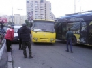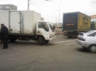Кілька хвилин тому на столичній Оболоні зіткнулися легковик, вантажівка та тролейбус з пасажирами. За попередніми даними, аварію спровокував легковий автомобіль.