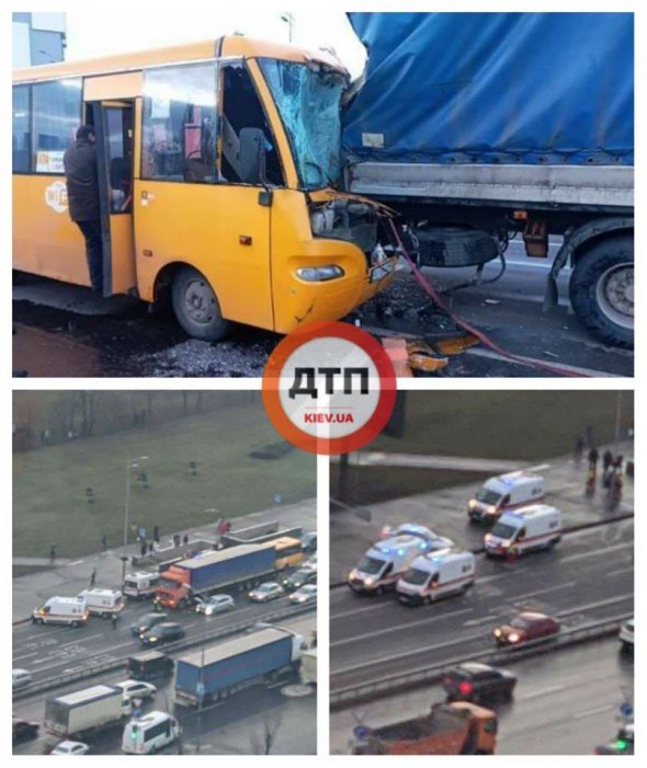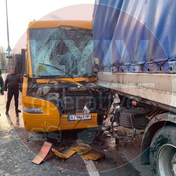 Зазначається, маршрутка №474 сполученням станція метро Харківська - Бортничі на повному ходу в'їхала у задню частину вантажівки.