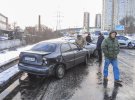 За словами водія "Славути", перед ним їхав автомобіль, який почало носити по дорозі і він врізався у відбійник. Чоловік намагався уникнути зіткнення і почав гальмувати. Після занесення дівчина-водій відразу ж виїхала, а під час гальмування в "Славуту" в'їхав Lanos. Далі на слизькій дорозі сталося зіткнення ще одного Lanos, Opel і Citroen.