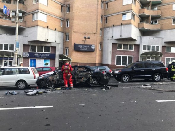 У Києві біля Бесарабського ринку підірвали автомобіль Toyota Camry з грузинськими номерами.