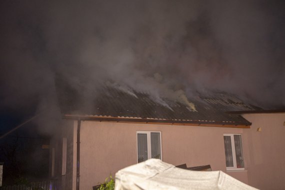 У цей час вогонь охопив дах будинку. На місце виїхали рятувальники, яким довелося ламати черепицю, щоб ліквідувати пожежу. Густий дим заволік все в околиці. Станом на 04:00 пожежу ліквідували.