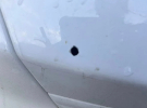 Оглянувши машину, Дворецька виявила пробоїну на кузові. Отвір був за 15 см від заднього скла, якраз у тому місці, де сидів її син.