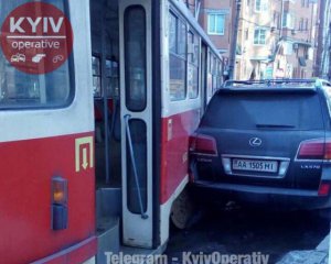 У столиці сталася ДТП на вулиці Дмитрівській, у транспорту пригоду потрапив позашляховик Lexus та трамвай №15.