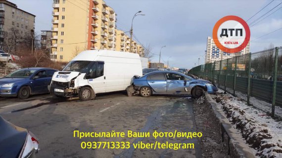 6 лютого в Києві водій буса Ford Transit із вагітною дружиною в салоні влаштував масштабну аварію з постраждалими.