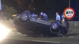 Там зіткнулися одразу 5 автомобілів, які рухалися в напрямку станції метро Почайна. Одна з автівок від сильного удару перекинулася на дах, повідомляє "Київ оперативний".