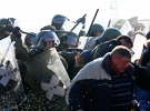 За інформацією Reuters, у відповідь проти протестуючих застосували гумові кулі і сльозогінний газ. Поранення гумовими кулями отримали 10 сербів.
