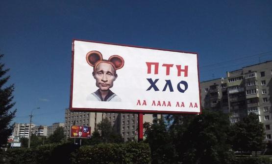 У Луцьку на одному з центральних проспектів розмістили білборд з написом "ПТН ХЛО" і зображенням президента Росії з великими, як у Чебурашки, вухами.