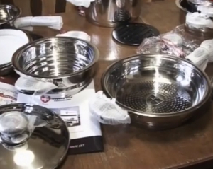 Такий вартісний набір каструль пані Ромі на день народження подарували її близькі родичі. Жінка каже: рідня довго не зізнавалася, де купила такі дорогі баняки. Врешті-решт почула історію про горе-іноземців. Потрапили на гачок шахраїв також батьки двох подруг пані Роми. А от родичі жінки придбали аж цілих чотири комплекти псевдошвейцарського посуду на 24 тисячі гривень.