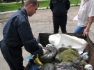 Об 11:30 на околиці міста, в районі складу "Метро" міліціонери почали розбирати привезені коробки із наркотиками для знищення.