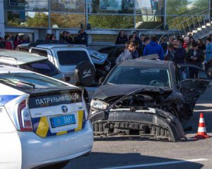 "Складно розібратися в ситуації. Адже один з учасників ДТП втік з місця аварії. Ми активно шукаємо водія білого "BMW Х5". Ймовірно, аварія сталася після того, як "Mitsubishi" і "BMW" не поділили дорогу, після чого Mitsubishi і протаранив 5 припаркованих машин", - розповів патрульний Роман Борисенко.