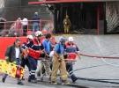 За словами очевидців, пожежа спалахнула миттєво, охопила всю будівлю і частково перекинулася на сусідні будівлі. На місці події працюють рятувальники і пожежні бригади.
