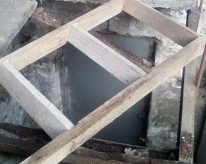 Після цієї ситуації аварійну ділянку відповідальні особи в порядок так і не привели - місце, де раніше знаходилася плита, місцеві жителі закрили сходами, щоб хоч якось вийти з під'їзду.