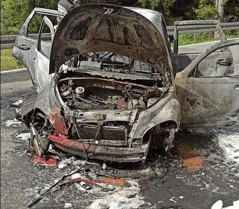 За його словами займання сталося після того, як машина врізалася в бетонну дренажну трубу.