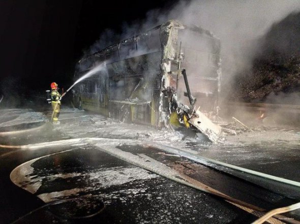В автобусі перебували 70 пасажирів, вони не постраждали. Пожежа почалася у відсіку, в якому розташовано двигун, після цього вогонь охопив увесь салон. Автобус належав українському перевізникові.