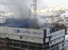 Спочатку представники інвестора Capital Group повідомили, що площа пожежі не перевищила п'яти квадратних метрів, вона була усунута власними силами. Однак ця інформація не підтвердилася, незабаром стало ясно, що без допомоги пожежників будівельникам не впоратися.