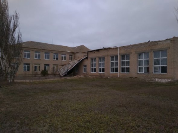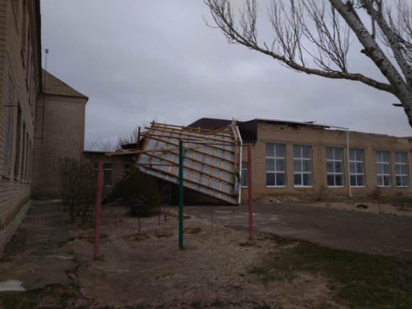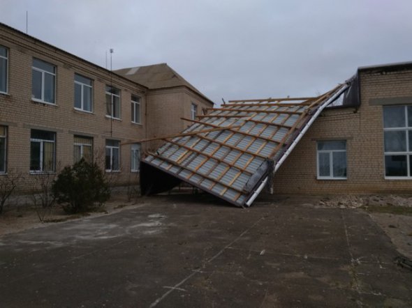 У Запорізькій області, у селі Охримівка, шквальний вітер зірвав дах з будівлі школи.