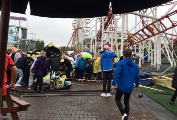 Один із вагончиків американських гірок у тематичному парку розваг M&D в місті Мазервелл у Шотландії під час руху на великій швидкості зійшов із рейок.