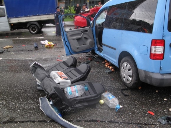 Попередньо встановлено, що "Фольксваген Кадді" рухався у бік моста Патона в крайньому лівому ряду. Недалеко від світлофора на нього із зустрічної смуги на великій швидкості вилетів спортивний "Сеат Леон". Машина боком врізалася в "німця" і відлетіла убік.