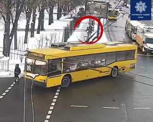 Патрульна поліція Києва опублікувала відео інциденту. Тролейбус повернув на перехід не збавляючи швидкості.