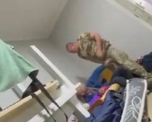 Інший військовий спершу спостерігає за діями колеги, а згодом намагається його заспокоїти.