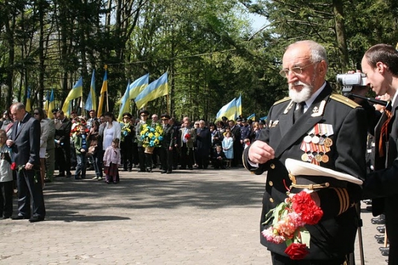 Він заявив, що чинна влада не приділила достатньо уваги ветаранам, тому представники компартії вирішили допомогти їм вшанувати пам?ять померлих воїнів, та відсвяткувати велику перемогу. Учасники цього мітингу тримали в руках прапори Компартії, організації „Русское единство", та копії прапорів перемоги. Варто зазначити, що прапорів на мітинг принесли більше, аніж було людей, здатних їх тримати. Через це один з мітингувальників тримав оберемок стягів в руках, так і не розгортаючи їх.
