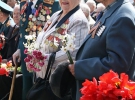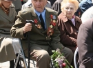 Кількадесят чоловік з червоними прапорами прийшли до вічного вогню вже після того, як там завершилися офіційні урочисті заходи, і більшість ветеранів розійшлося.