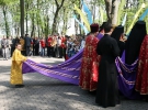 Мітингувальники не відреагували на прохання депутатів міськради-свободівців прибрати прапори з радянською сиволікою, і рушили покладати квіти до меморіалу. Правоохоронці оточили колону кільцем, і періодично відтягували вбік депутатів-„свободівців", які стаючи в ланцюг, пробували зупинити ходу.