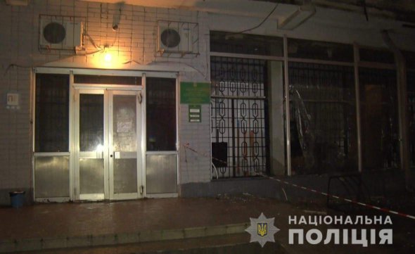 Внаслідок вибуху було пошкоджено вітрини будівлі. Постраждалих немає.