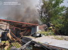 Рятувальники ліквідовують осередки займання та проводять пошуково-рятувальні роботи.