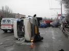 Маршрутне таксі із пасажирами перекинулося в центрі міста. Аварія сталася близько 13-ї години. За попередніми даними, мікроавтобус зіткнувся з вантажівкою і перекинувся. На місці ДТП працювало 6 карет швидкої допомоги.