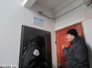 Біля вхідних дверей стоїть міліціонер з нашивкою "Спецпідрозділ УБОЗ "Сокіл". Всередину нікого не пускає. Каже, що це вказівка начальства.