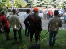 "Сьогодні під час мітингу ми знову помітили незаконне стеження за нами. Людина, яка проводила зйомку, не захотіла пояснити хто він. Ми завели його до відділення міліції і передали у руки правоохоронців. Тим часом під райвідділком зібралось кількасот жителів міста. Вони розповіли нам про жахіття, які творять у тому відділенні міліціонери. Правоохоронці тут били й катували людей. Про те, що такі кімнати дійсно є, нам розповіли кілька чоловік. Сказали, що вони знаходяться у підвалі. Цю інформацію підтвердив екс-мер міста, який переконує, що його тут катували кілька разів. Ми не підемо із відділення міліції, доки не дізнаємось правду ", - розповідає активіст Максим Поляков.