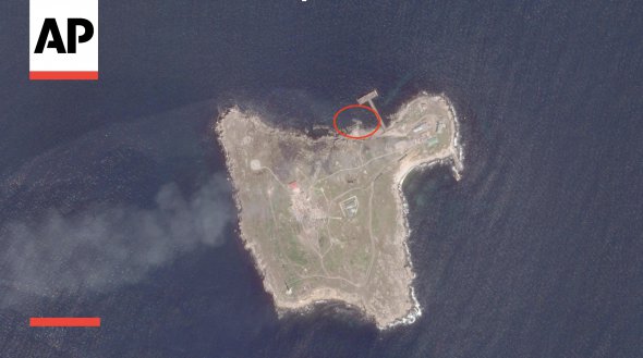 З'явилися супутникові знімки тимчасово захопленого окупантами острова Зміїний, на якому українські сили атакували флот Росії.