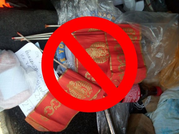 Спільна прикордонно-митна оглядова група виявила в багажнику прапори із символікою СРСР та гербом Російської Федерації, картини із символікою РФ, фотографії президента РФ Володимира Путіна, картини із зображеннями військової техніки країни-агресора, наліпки, нагороди, а також значну суму грошей в іноземній валюті.