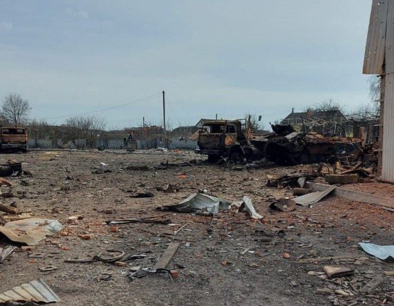 Українські захисники опублікували фото залишків російської техніки у Тростянці Охтирського району Сумської області.