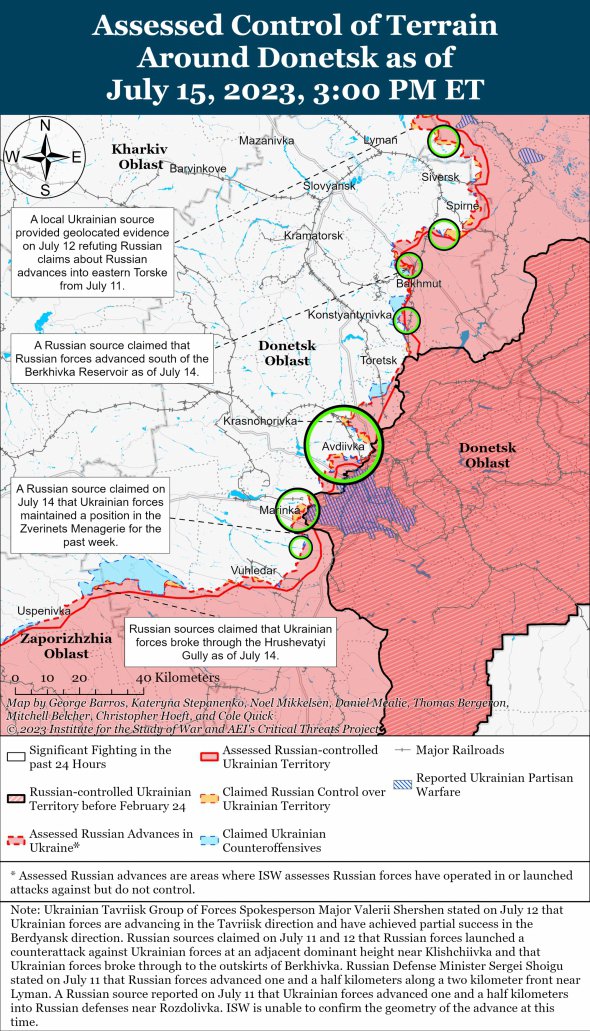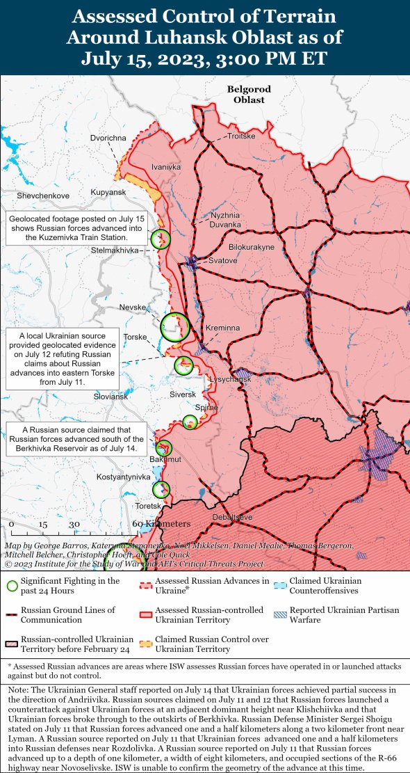 На опублікованих 15 липня геолокаційних кадрах видно, що невизначена російська піхота дещо просунулася в напрямку Новоселівського і займає позиції вздовж залізниці поблизу населеного пункту.