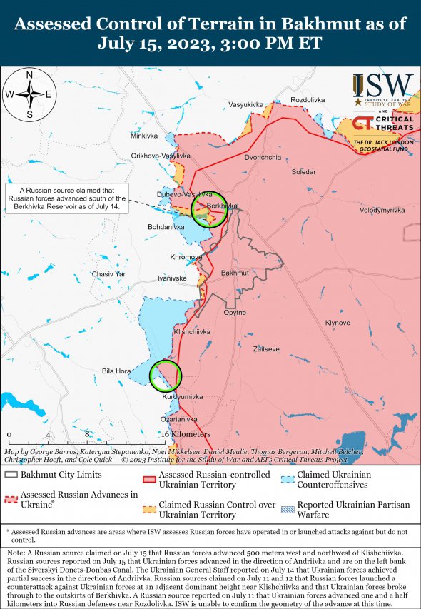 Одне з російських джерел стверджувало, що українські сили просувалися в напрямку Курдюмівки. Російські блогери також писали, що українські війська продовжували атакувати російські позиції поблизу Кліщіївки і намагалися повернути позиції в районі Берхівки.