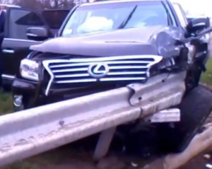 На під'їзді до Києва позашляховик "Лексус" із номерами "КМ" протаранив мікроавтобус, від чого останнього відкинуло на 50 метрів, а сам врізався у металевий відбійник, який пронизав його наскрізь. Про це повідомляє газета "Сегодня".