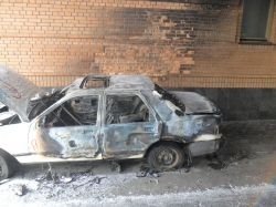 Як наслідок, хтось кинув недопалок через розбите скло на сидіння автомобіля, і салон за мить спалахнув.
