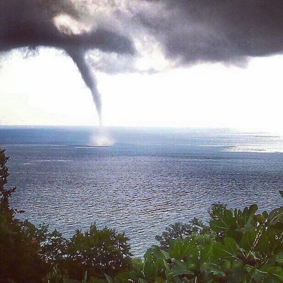 Жителі міста постили моторошні картинки в соцмережі. На фото видно величезний стовп, який піднімається з моря в декількох кілометрах від берега.