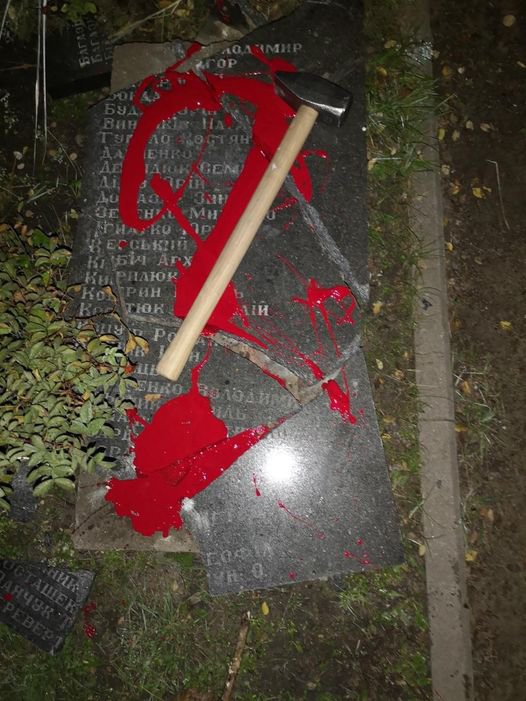 "У Бабиному Яру вчинено акт вандалізму. Так звані "невідомі особи" розбили пам'ятну плиту на якій закарбовані імена учасників Похідної Групи ОУН, яких німці розстріли у 1941-1942 роках. Пам'ятна плита, до речі, розміщена біля Пам'ятного Хреста, встановленого у 1992 році на честь Олени Теліги і українців – жертв Бабиного Яру. Уже не вперше паплюжиться святе для кожного українця місце. Пам'ятний Хрест неодноразово підпалювали, намагалися зрізати, плити трощили і обливали фарбою. І жодного разу поліція не знаходила злочинців" – написав на свій сторінці у Facebook голова Організації українських націоналістів Червак Богдан.