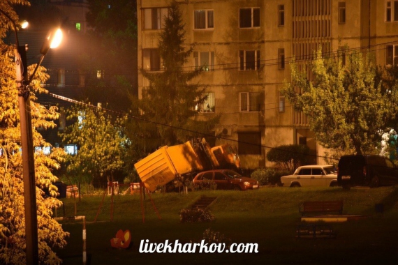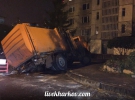 На вулиці Ахсарова, 19 у Харкові сміттєвіз провалився під асфальт.
